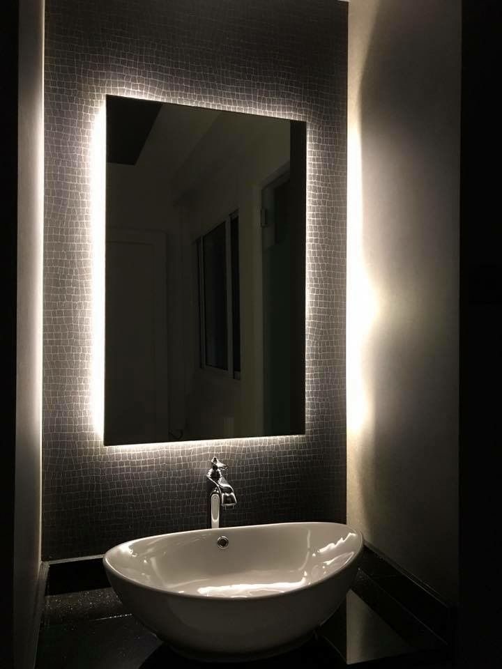 آینه مستطیل چراغدار با سندبلاست و سنسور تاچ