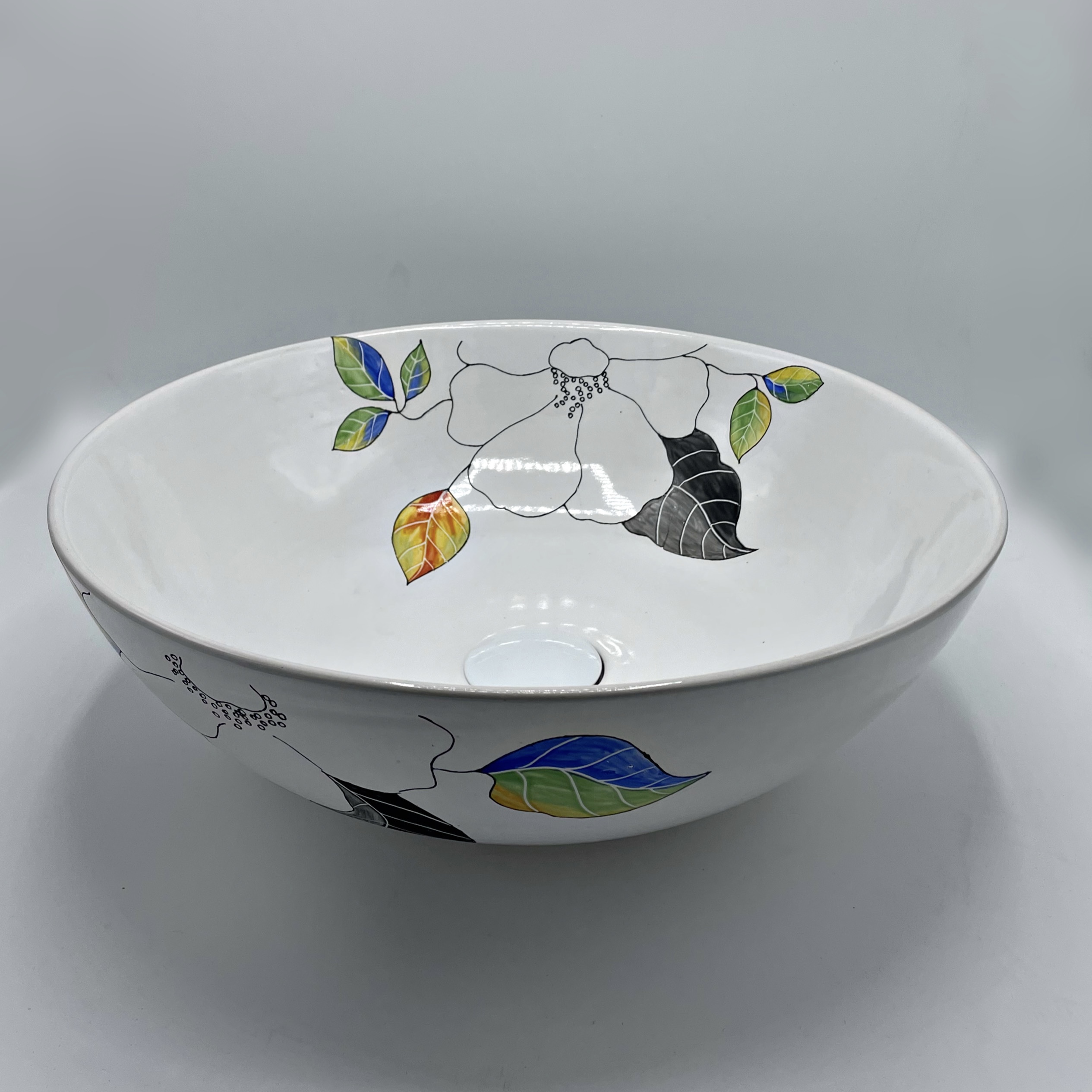 کاسه روشویی روکار طرح شکوفه رنگی