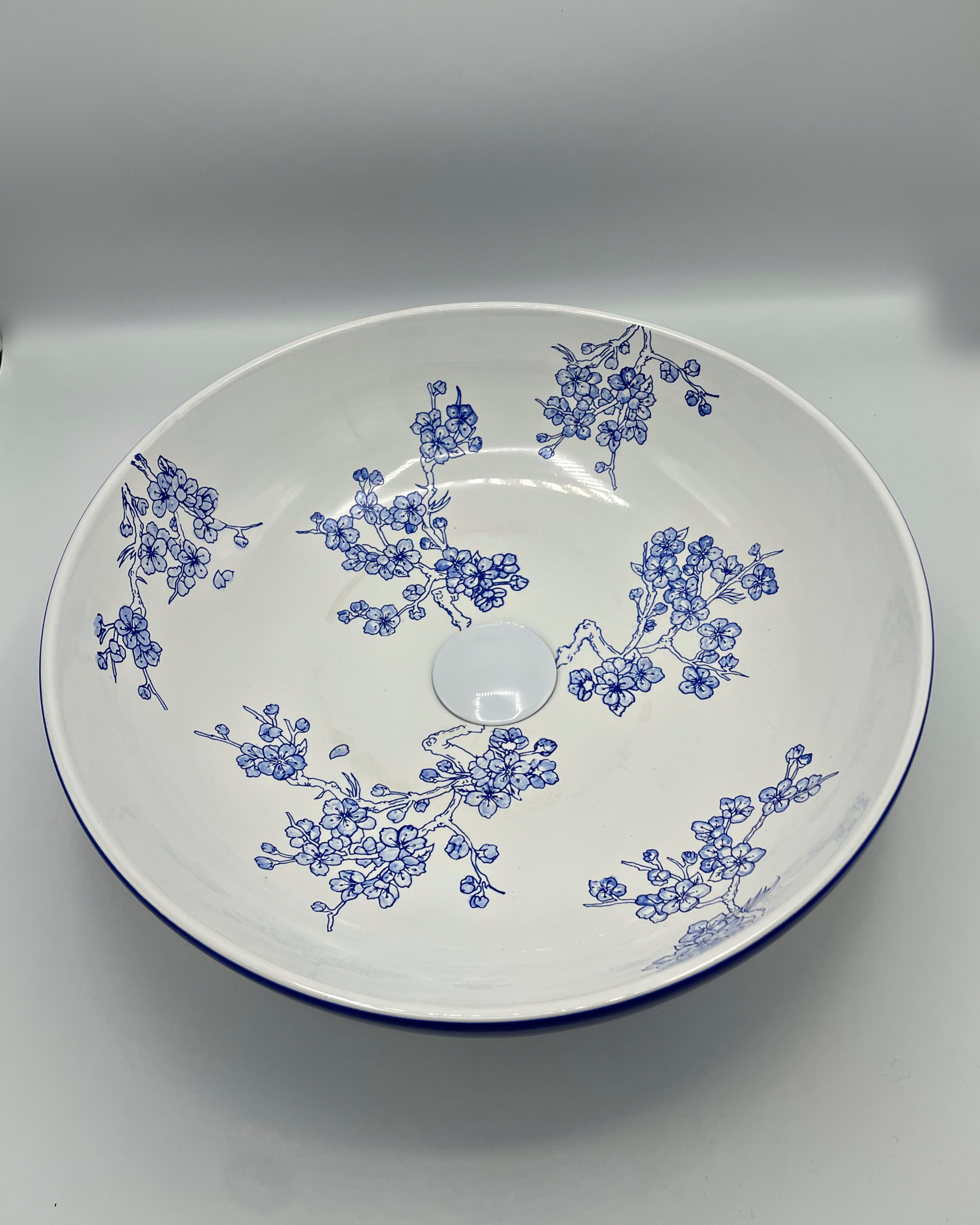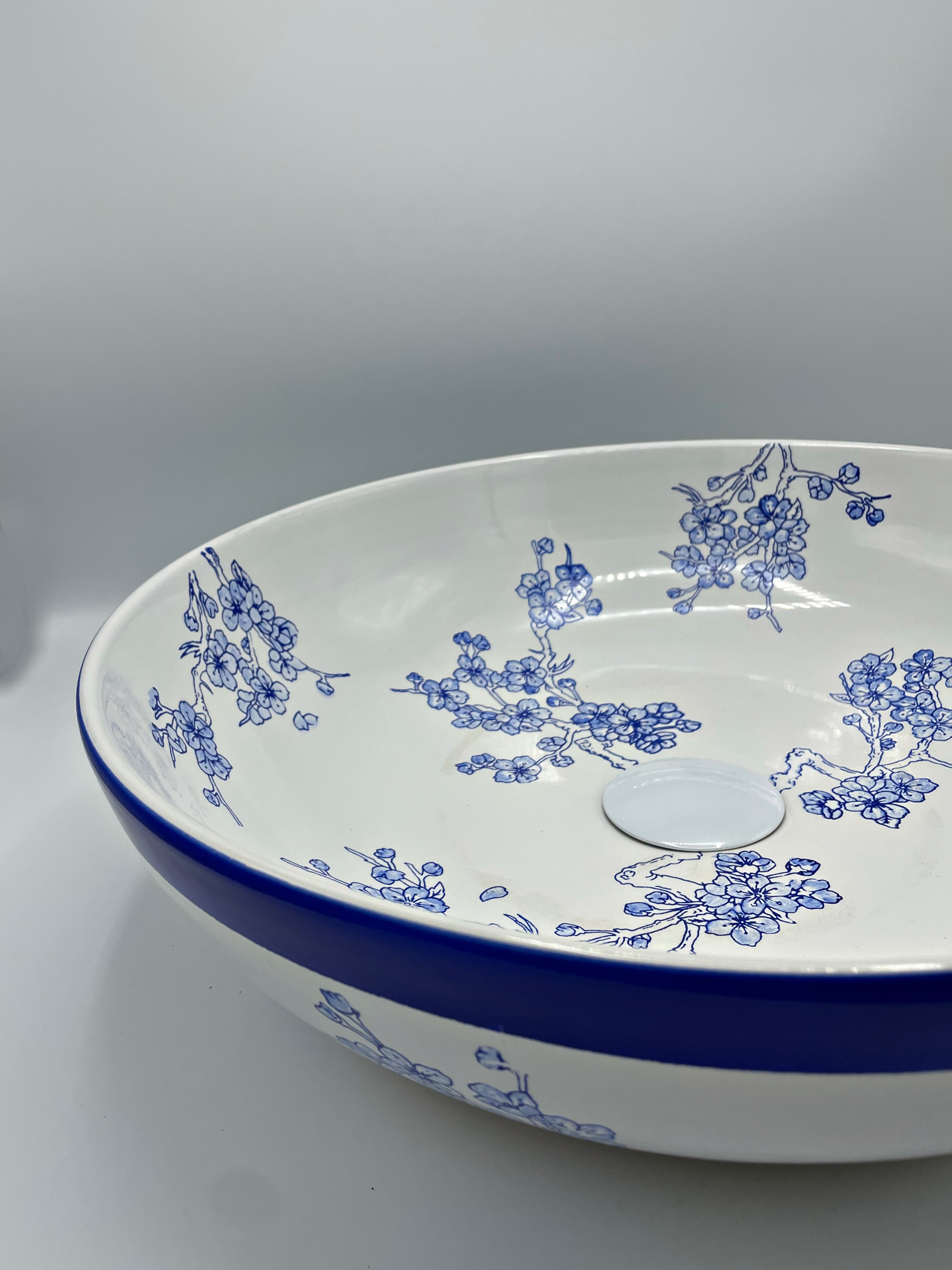 کاسه روشویی روکار _ مدل شکوفه آبی همراه با نوار آبی _ قطر ۴۰
