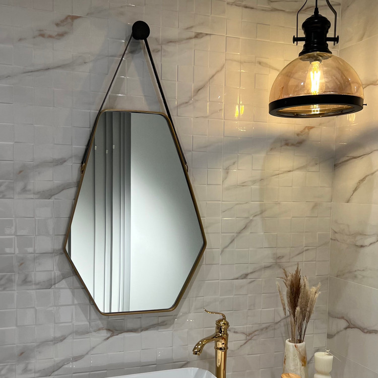 آینه ذوزنقه با بند چرم طبیعی