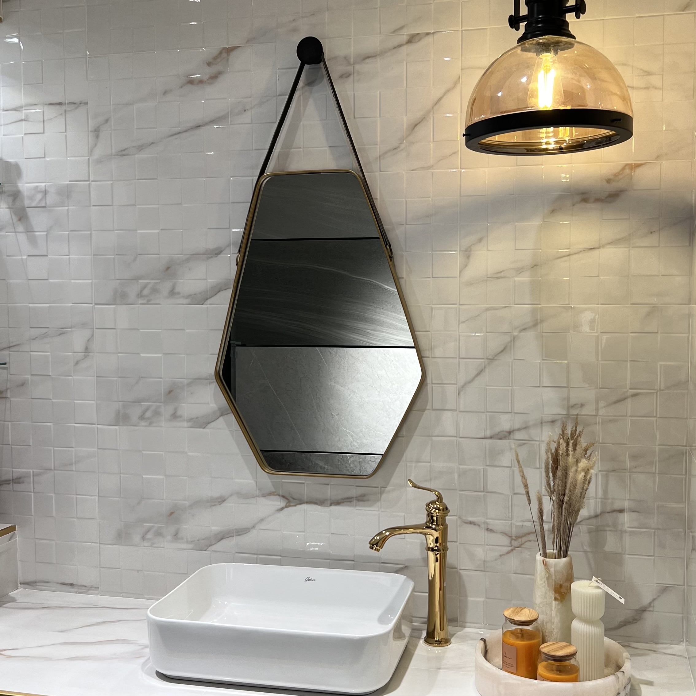 آینه ذوزنقه با بند چرم طبیعی